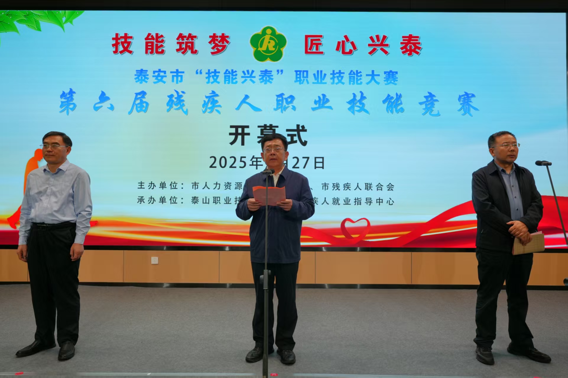 9月26日-27日,2025年泰安市“技能兴泰”职业技能大赛—第六届残疾人职业技能竞赛在泰山职业技术学院成功举办。市残联党组书记、理事长桑逢智,市公共就业和人才服务中心党委委员、纪委书记谷鹏,泰山职业技术学院党委委员、副院长陈士兵出席开幕式。